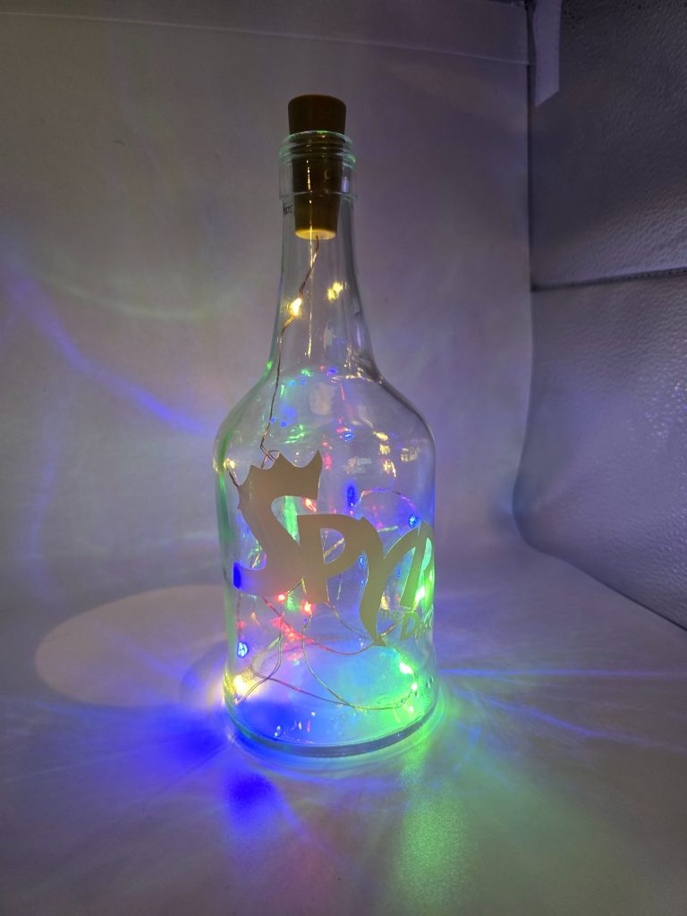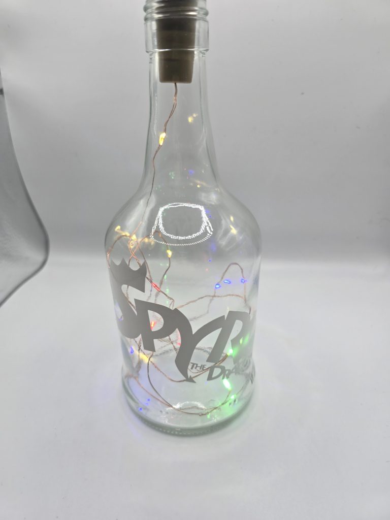 As the evening descends upon the wedding celebration, a stunning bottle adorned with soft, lights creates a magical ambience, illuminating the surrounding space with a warm glow. Strategically placed among the carefully curated table settings, this enchanting display complements the elegant vinyl wedding stationery, which features delicate designs and personalised touches. The combination of the glowing bottle and beautifully crafted invites and menus adds a charming and romantic atmosphere, inviting guests to immerse themselves in a dreamy experience that reflects the love celebrated on this special day.